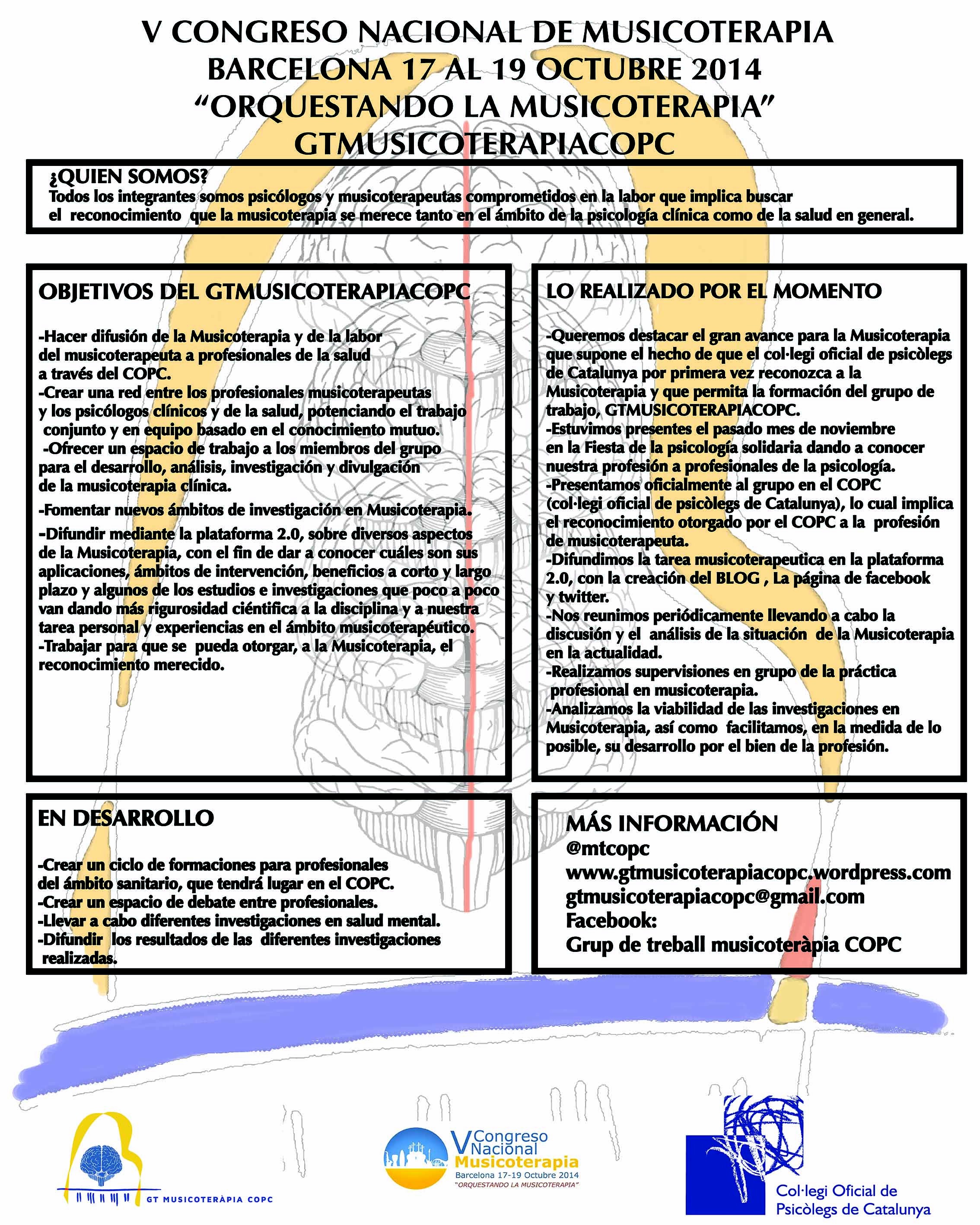 Presentació del Grup de Treball de musicoteràpia del Col.legi oficial de psicòlegs de Catalunya (COPC) que implicà el reconeixement de la Musicoteràpia per la comunitat de psicòlegs: